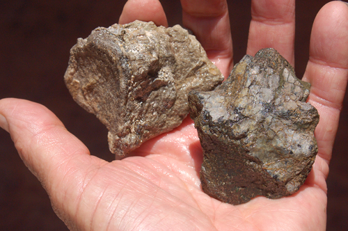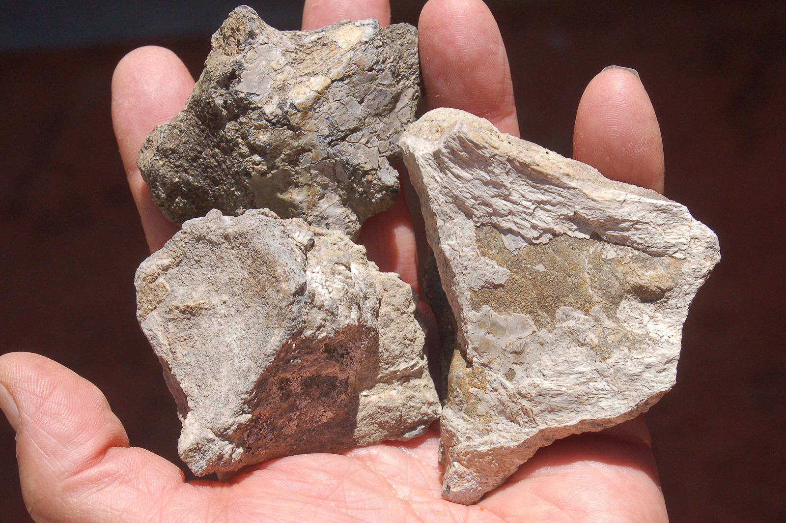 The specimen pieces I offer are just that: shards, blocks, or fragments of dinosaur bone that someone, at some point in time, picked up in the high desert region of the Colorado Plateau. Some of this material is agatized (gembone), much of it is calcified. I have sorted through many tons of broken bone material and selected pieces that had interesting features, definitive structure, and in many cases are esthetically pleasing! This lot has three small blocks, each exhibiting some of the fascinating features found in bone. |