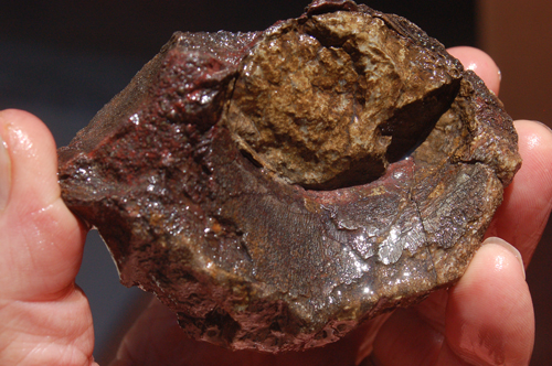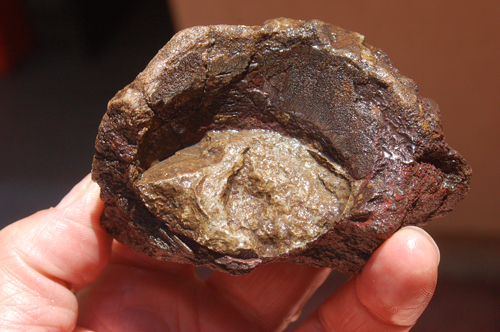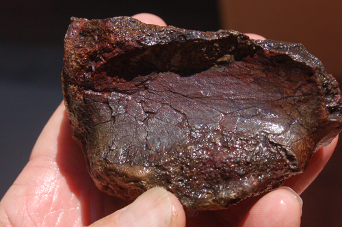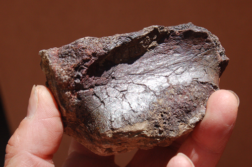The specimen pieces I offer are just that: shards, blocks, or fragments of dinosaur bone that someone, at some point in time, picked up in the high desert region of the Colorado Plateau. Some of this material is agatized (gembone), much of it is calcified. I have sorted through many tons of broken bone material and selected pieces that had interesting features, definitive structure, and in many cases are esthetically pleasing! This particular piece has a really nice chocolate brown coloration with an interesting hollow filled with the clay matrix the dinosaur was buried in. |