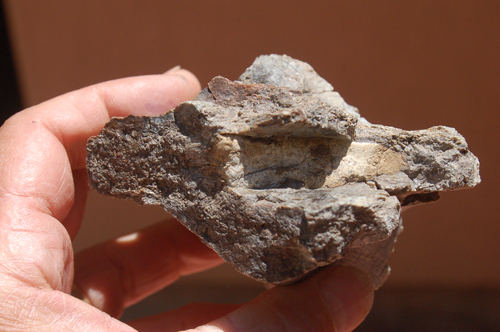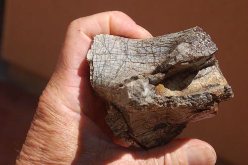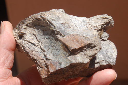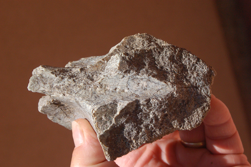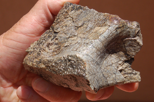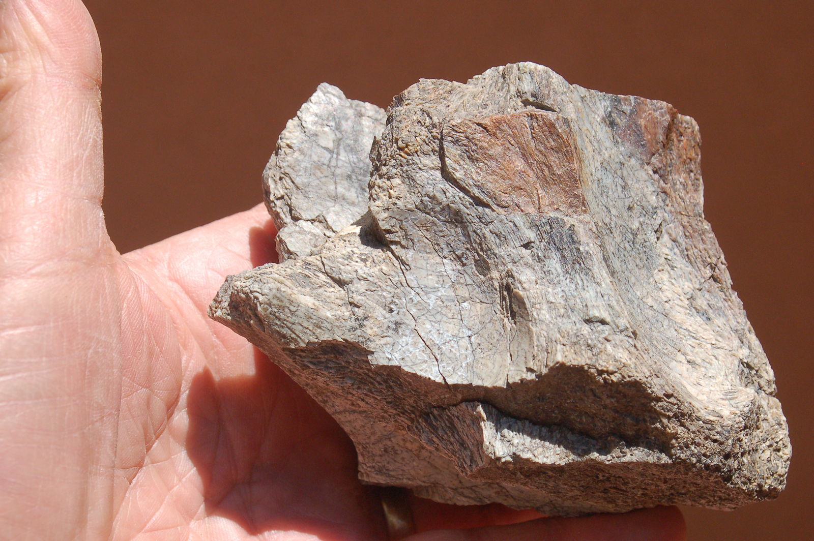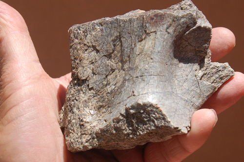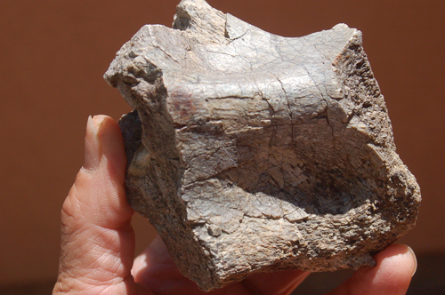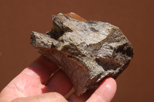 The specimen pieces I offer are just that: shards, blocks, or fragments of dinosaur bone that someone, at some point in time, picked up in the high desert region of the Colorado Plateau. Some of this material is agatized (gembone), much of it is calcified. I have sorted through many tons of broken bone material and selected pieces that had interesting features, definitive structure, and in many cases are esthetically pleasing! This piece is a nicely detailed piece with lots of character! |