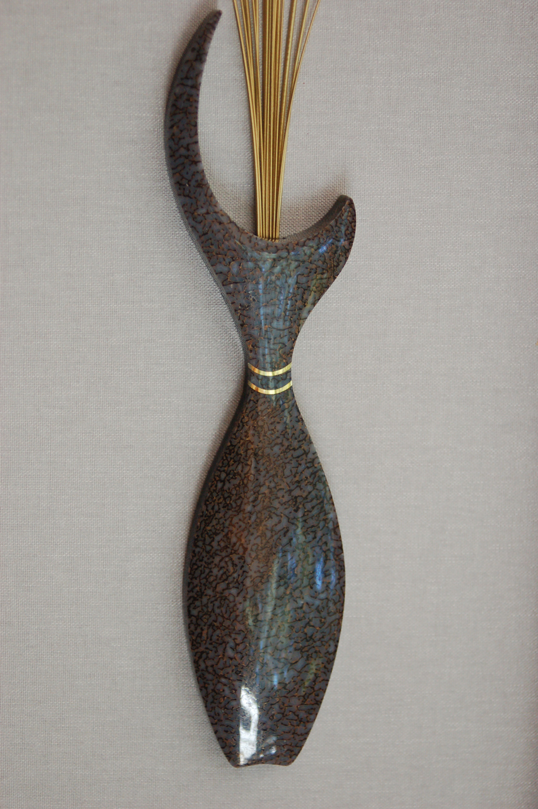has been fitted with a brass tube for mounting. The original Flame had 3 concave sides. With later versions, I sometimes dome one of the sides, which tends to soften the overall appearance. Because of this, I call them “Soft Flames”. As