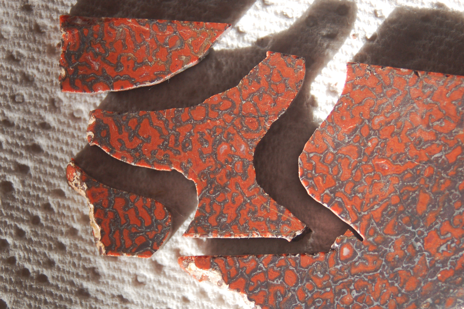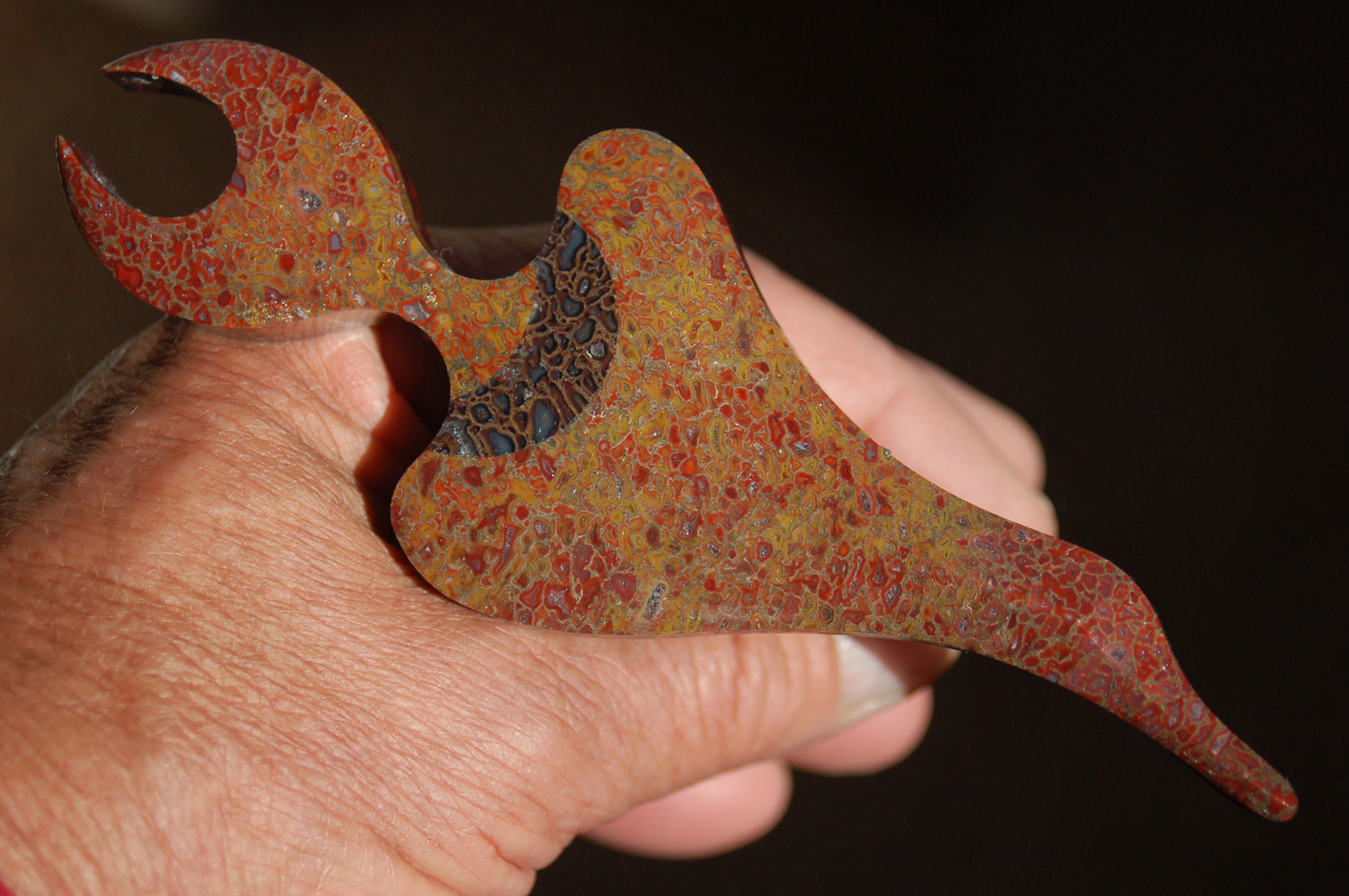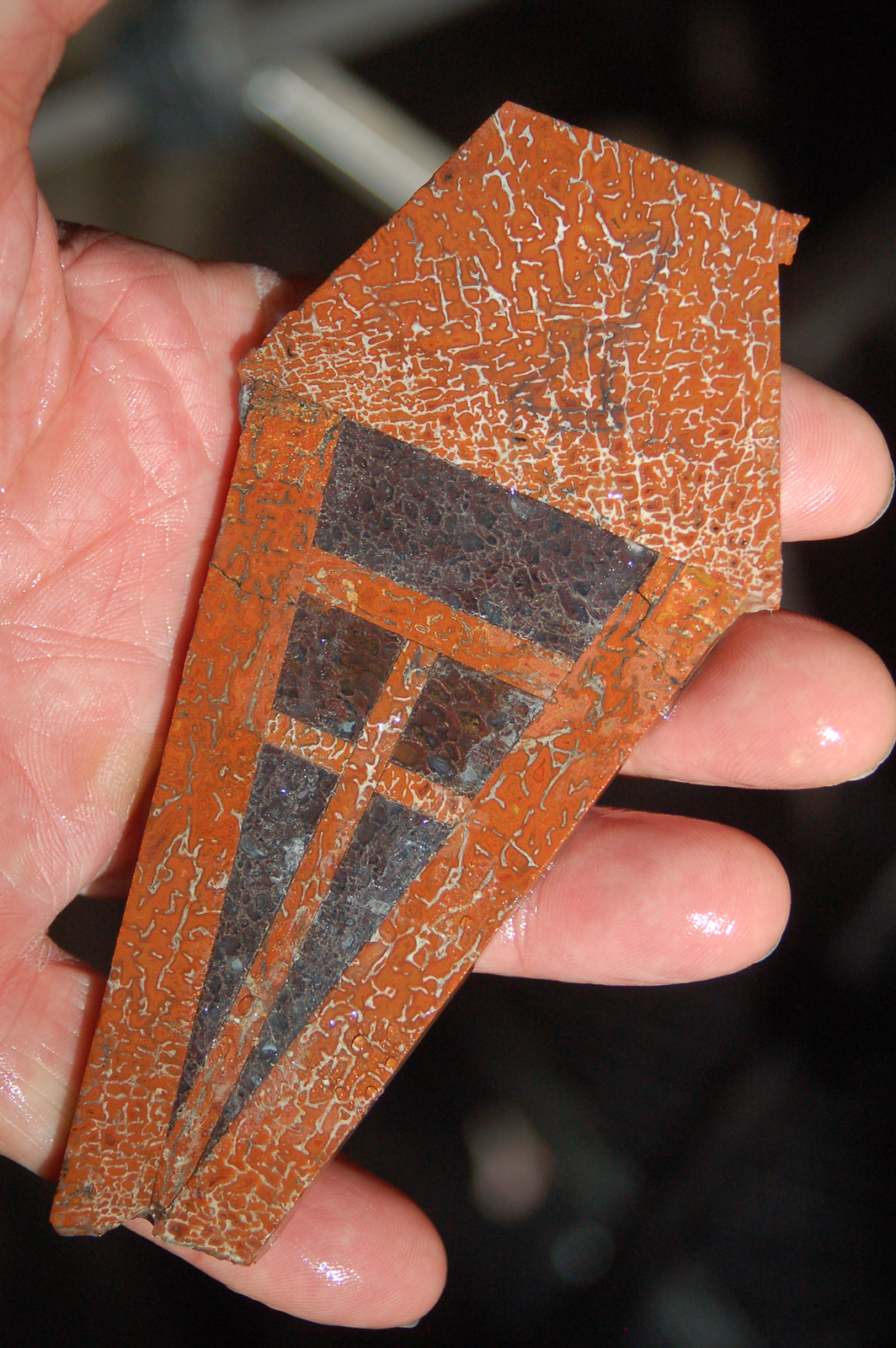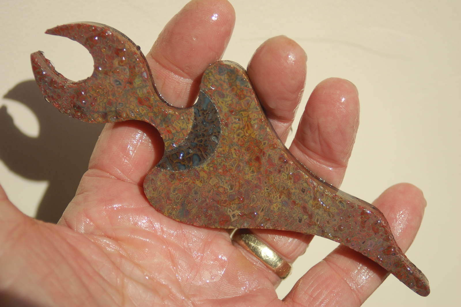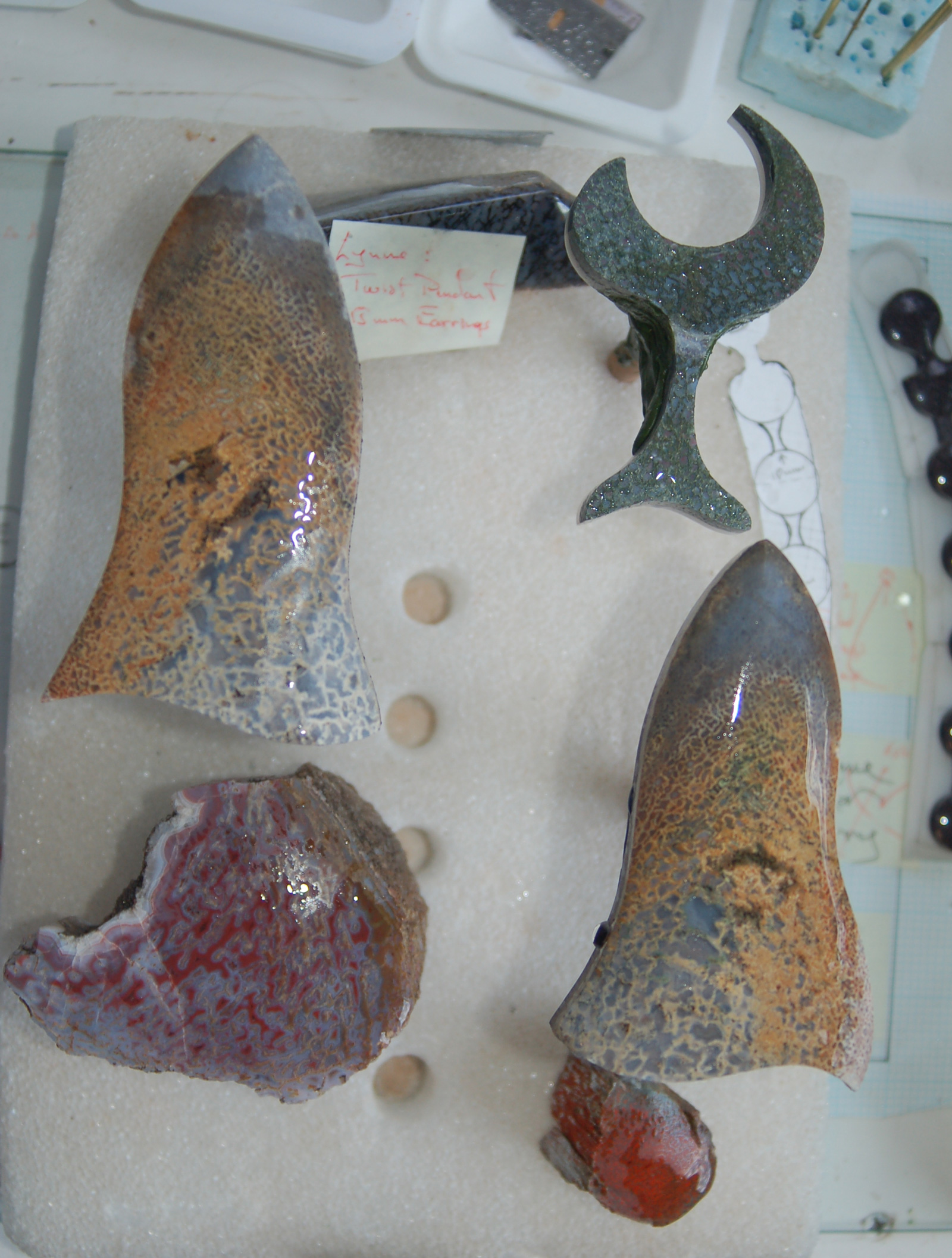 Cutting the "stem" out of a beautiful piece of red gembone.