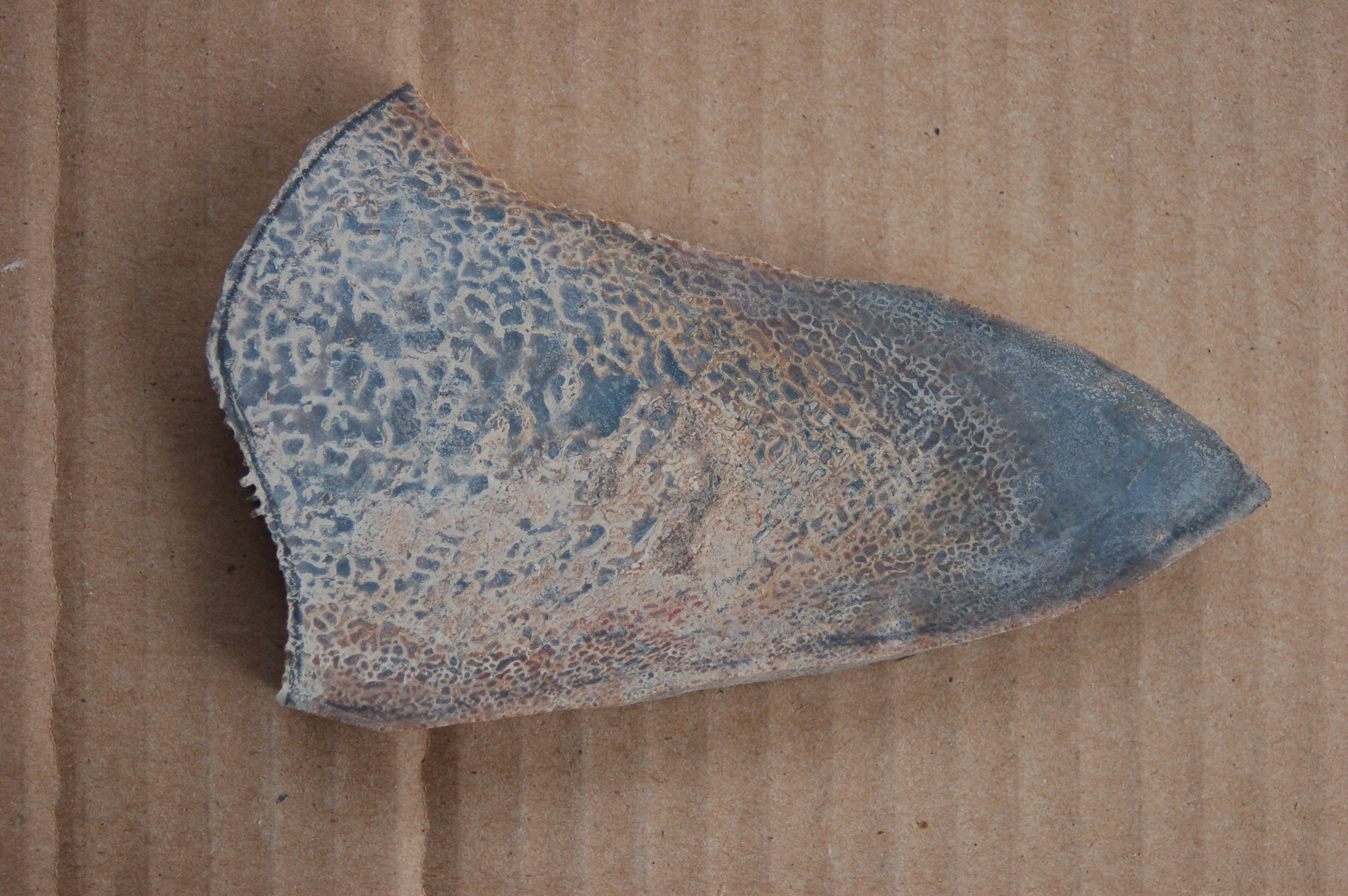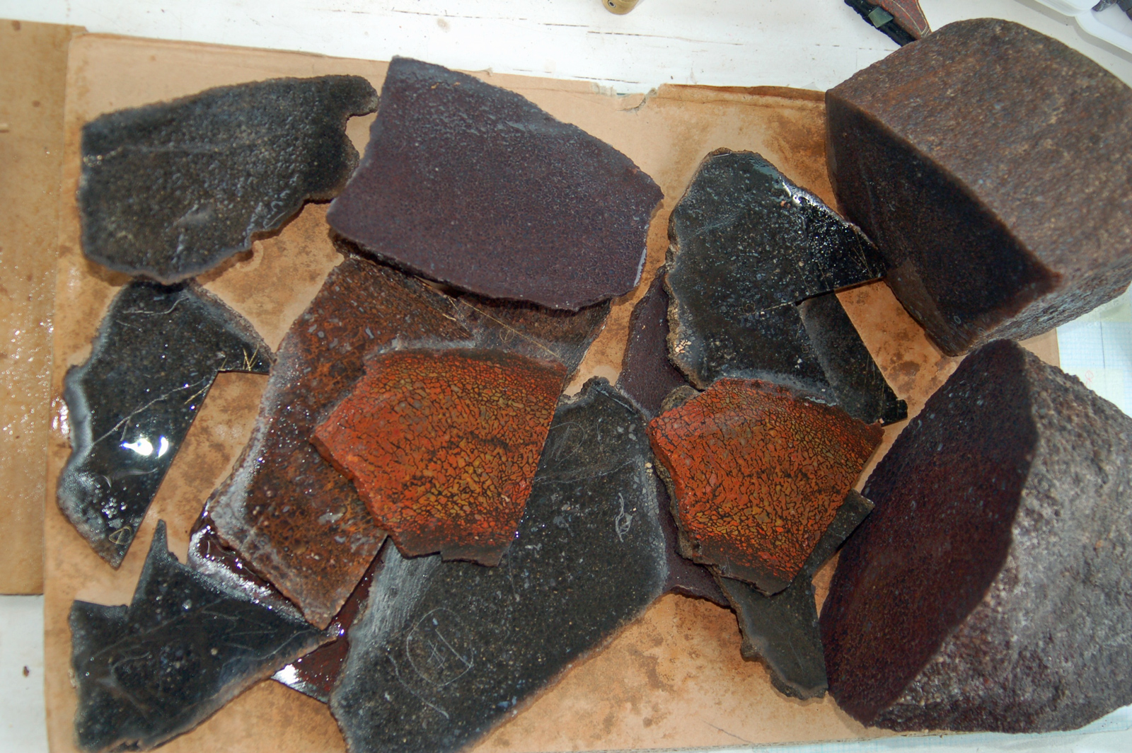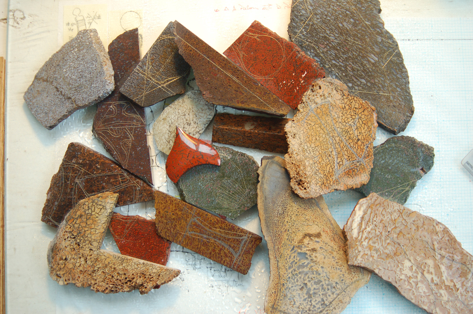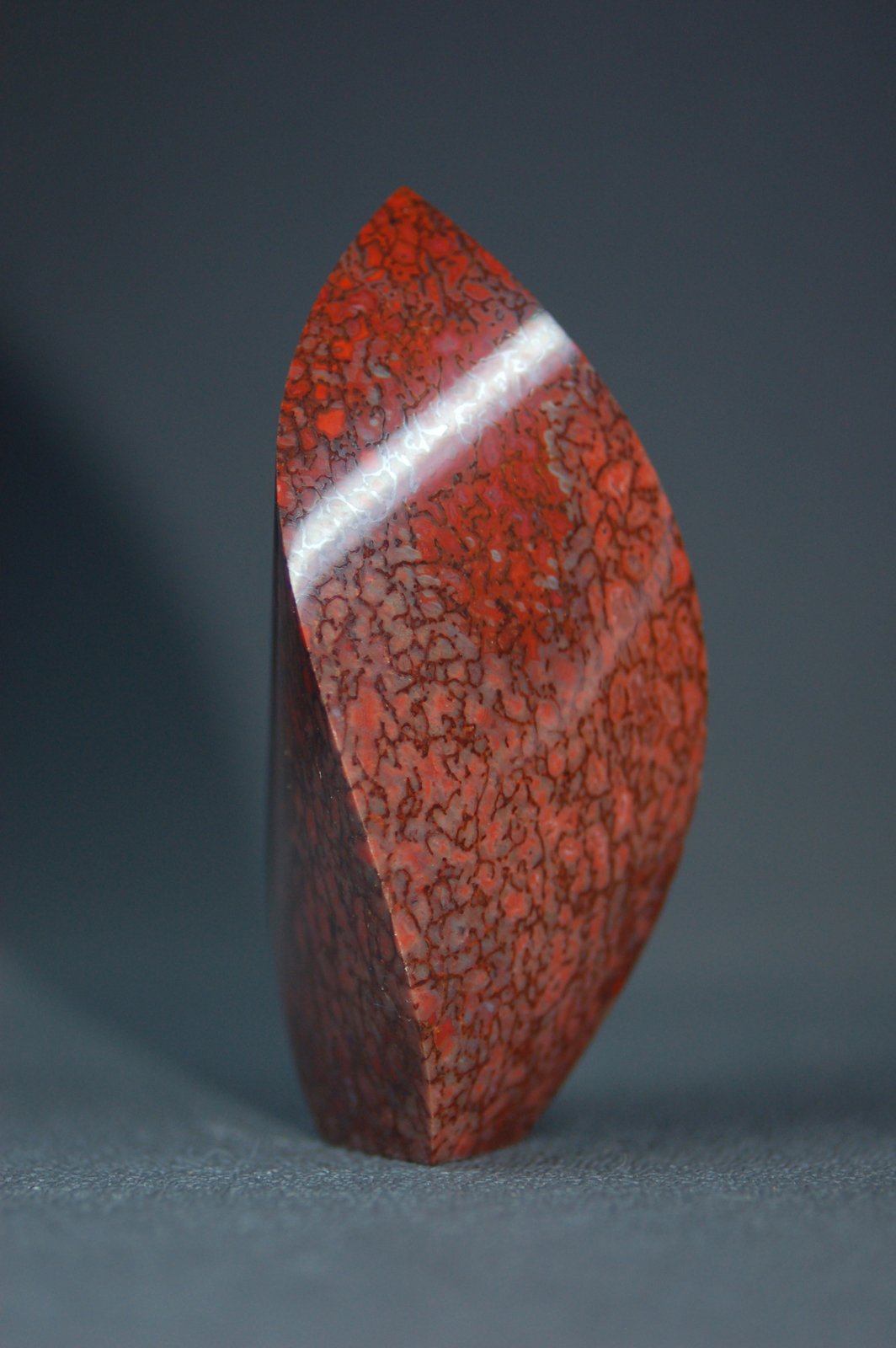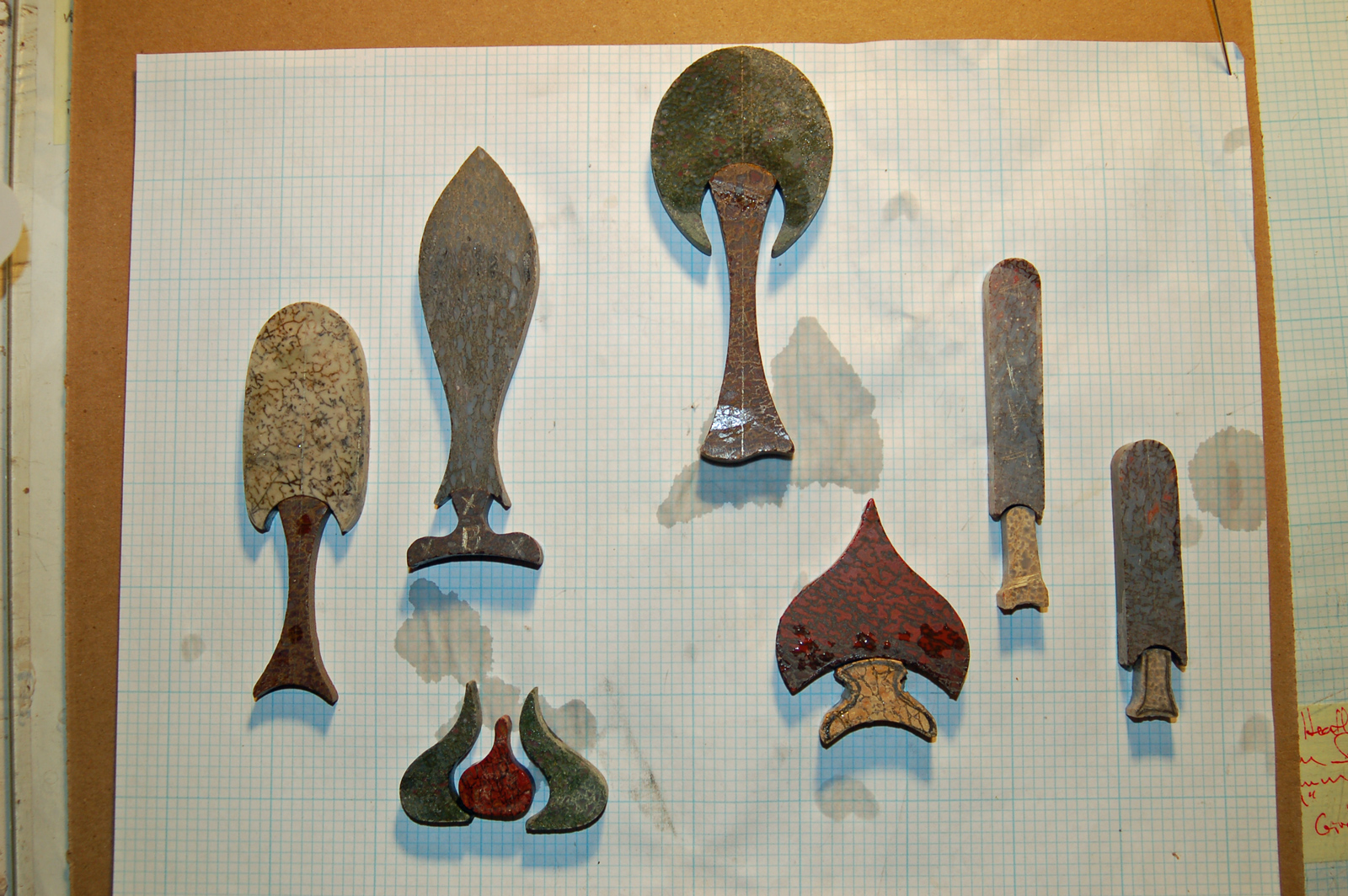 Cutting the "stem" out of a beautiful piece of red gembone.