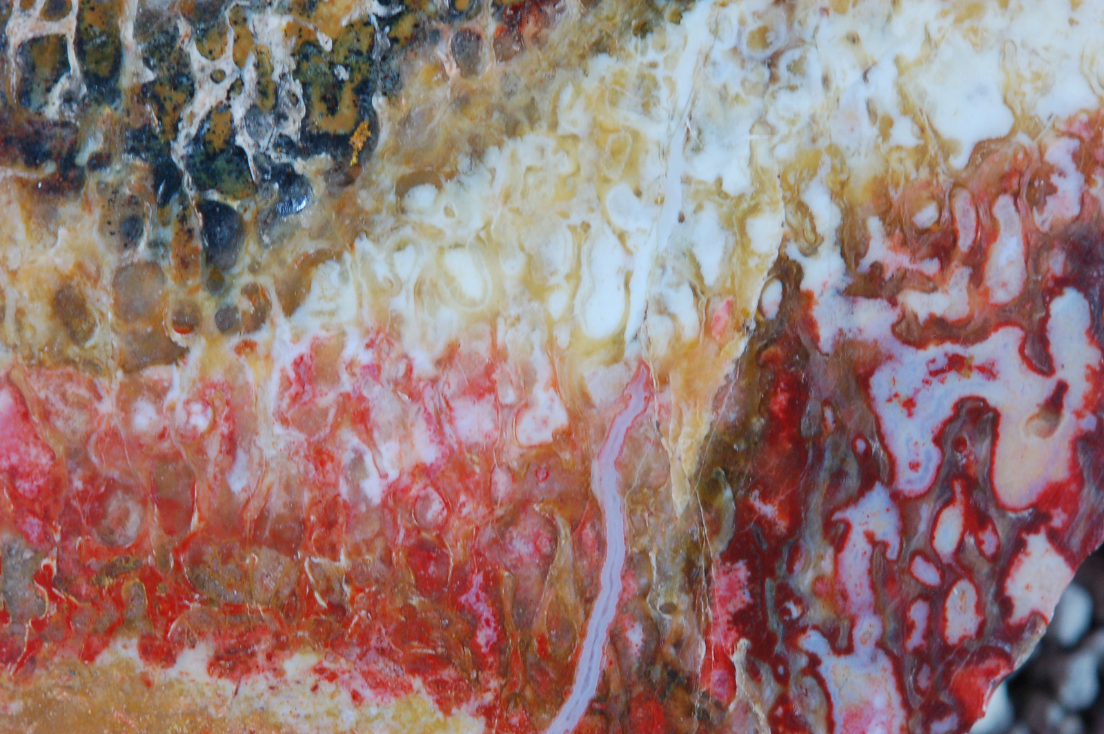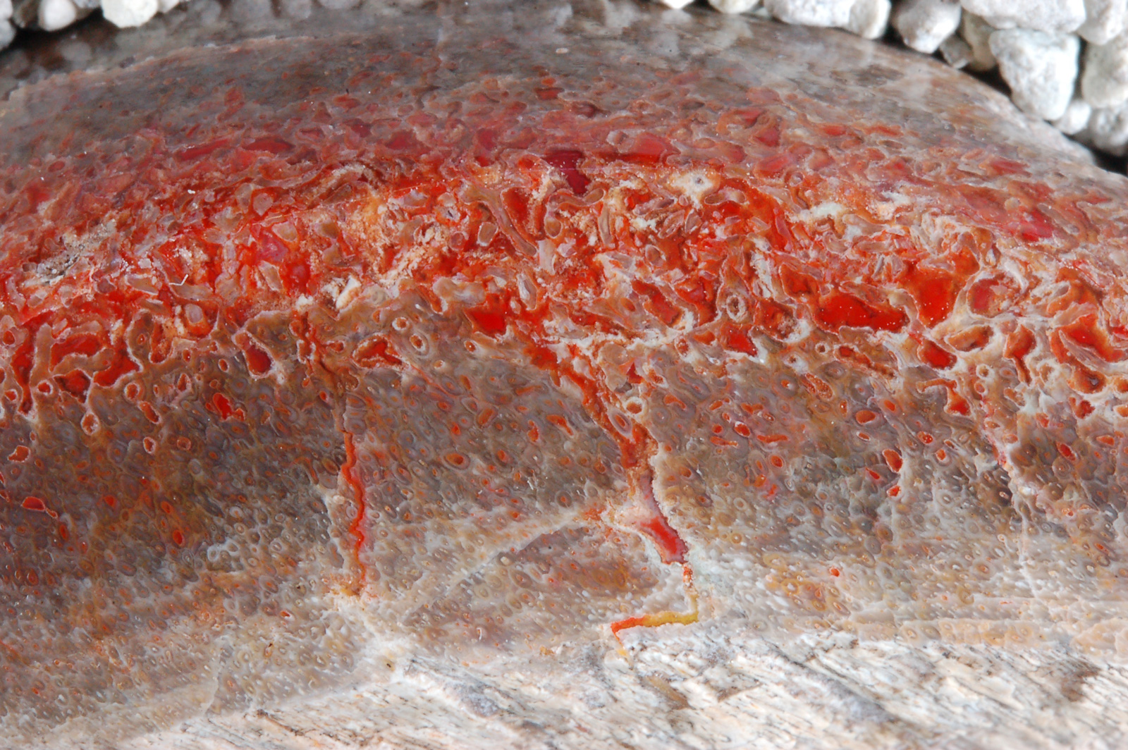 | PS-11-6-13-E With the macro photography it was difficult to control the remarkable color variations in this piece , but the structural detail is accurate and magnificent. The true beauty of bone is in the micro-detail!! |